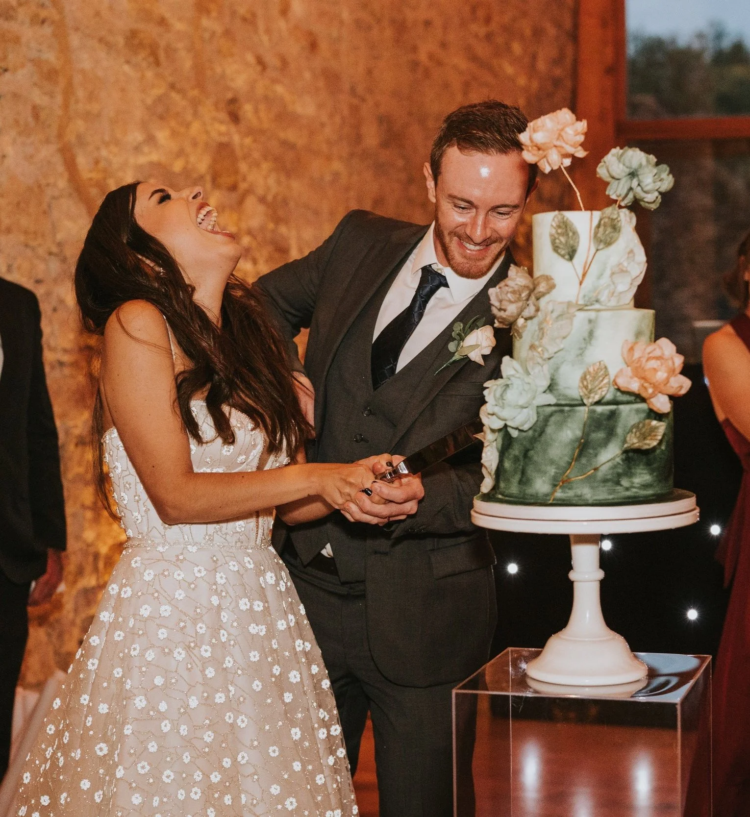On a more sensible note though, this is one of the most commonly asked questions and the majority of couples tend to assume they need a towering cake to feed their numbers but in reality, your wedding cake can go quite a long way.